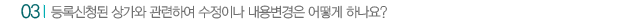 µî·Ï ½ÅûÁßÀ̰ųª µî·ÏÀÌ ¿Ï·áµÈ »ó°¡¿Í °ü·ÃÇÏ¿© »ó°¡ÀÚ·á¹× ´ã´çÀÚ ¿¬¶ôó µîÀÇ ¼öÁ¤ÀÌ ÇÊ¿äÇÒ °æ¿ì ÇØ´ç»ó°¡ÀÇ ¸ð´ÏÅÍÈ­¸é ÇÏ´ÜÀ» ÅëÇØ ¿Â¶óÀÎ ½ÅûÇϽðųª ¶Ç´Â ´ç»ç ¾ç½ÄÀǸ¦ Ãâ·ÂÇÏ¿© ÆÑ½º·Î ½ÅûÇϽǼö ÀÖÀ¸¸ç, ¼öÁ¤»çÀ¯ °ËÅäÈÄ ¼öÁ¤ÇÏ¿©µå¸³´Ï´Ù